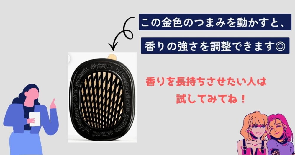 できるだけ長く、香り持ちをよくしたい方はつまみを動かして調整してみて下さい